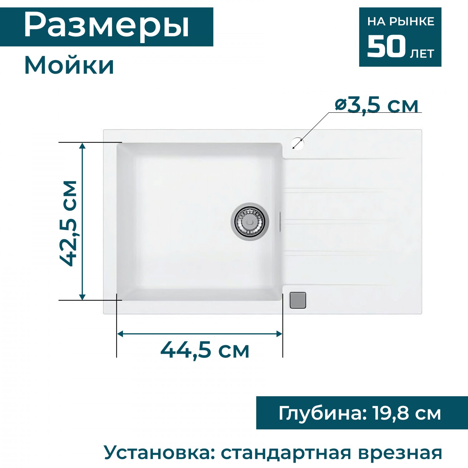 Мойка кухонная Alveus Granital Cadit 40 Arctic-G11 860х500х200 с сифоном, белая
