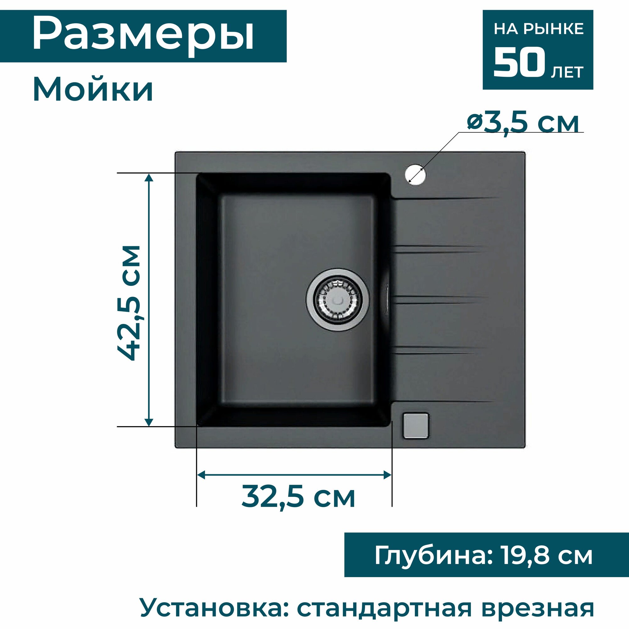 | Особенности | отверстие под смеситель / сливная арматура |
