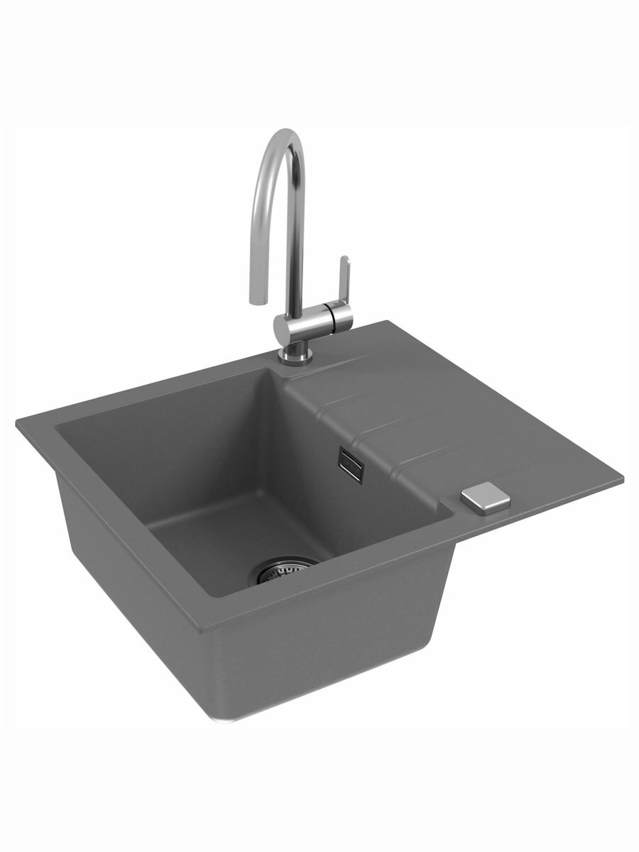 Мойка ALVEUS GRANITAL CADIT 10 CONCRETE - G81 590 X 500 1X в комплекте с сифоном 1132823, Alveus серый