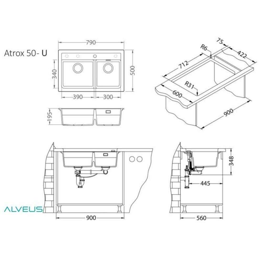 | Дополнительная информация | размер дополнительной чаши 30x34x14 см; монтаж врезной I (ширина шкафа 80 см) или под столешницу U (ширина шкафа 90 см); перелив в чаше; в комплекте слив, перелив, сифон, клапан-автомат, корзинчатый вентиль |