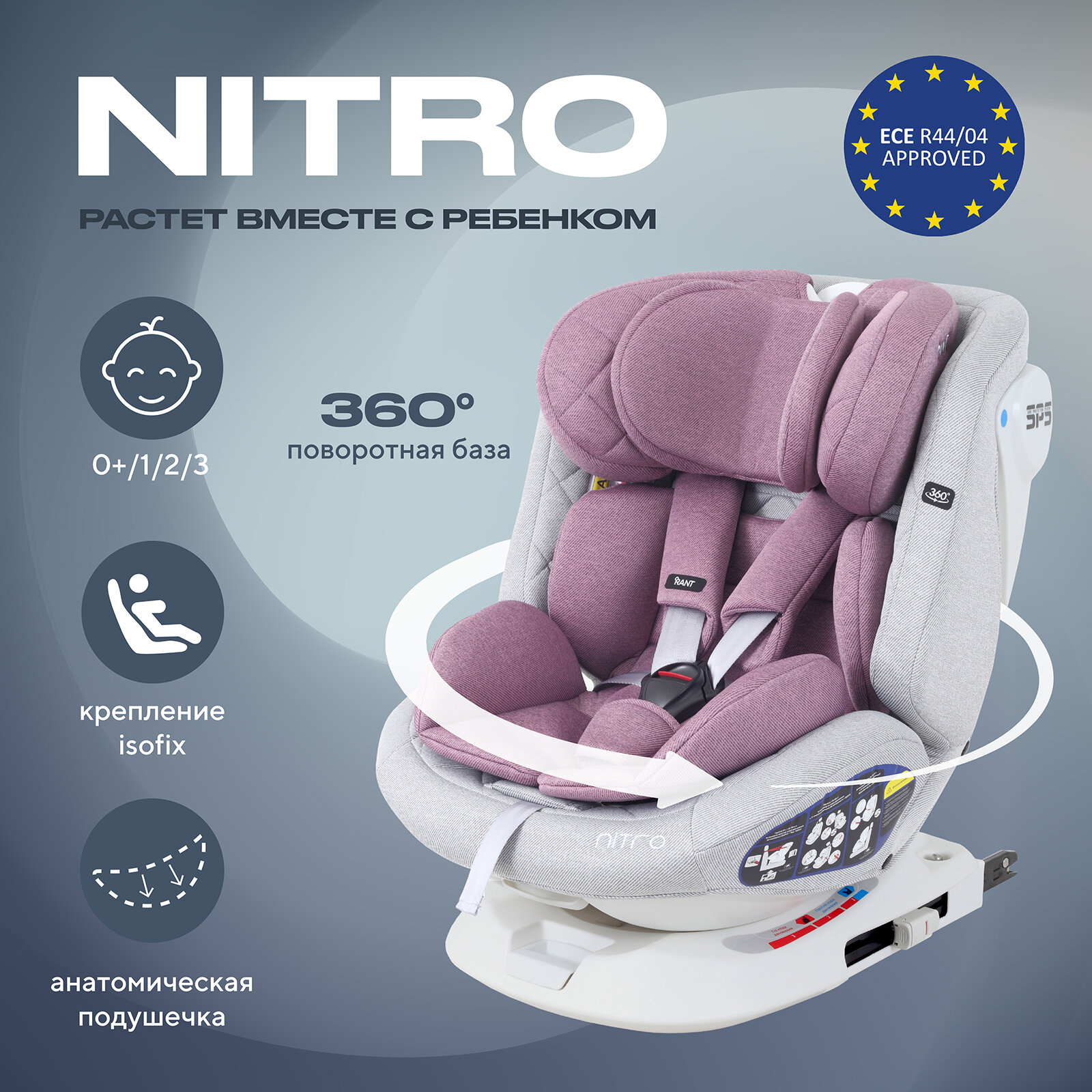 Купить Автокресло Rant Nitro isofix UB619 группа 0+/1/2/3 от 0 до 12 лет вес 0-36 кг рост 40-145 см, Grey/Pink