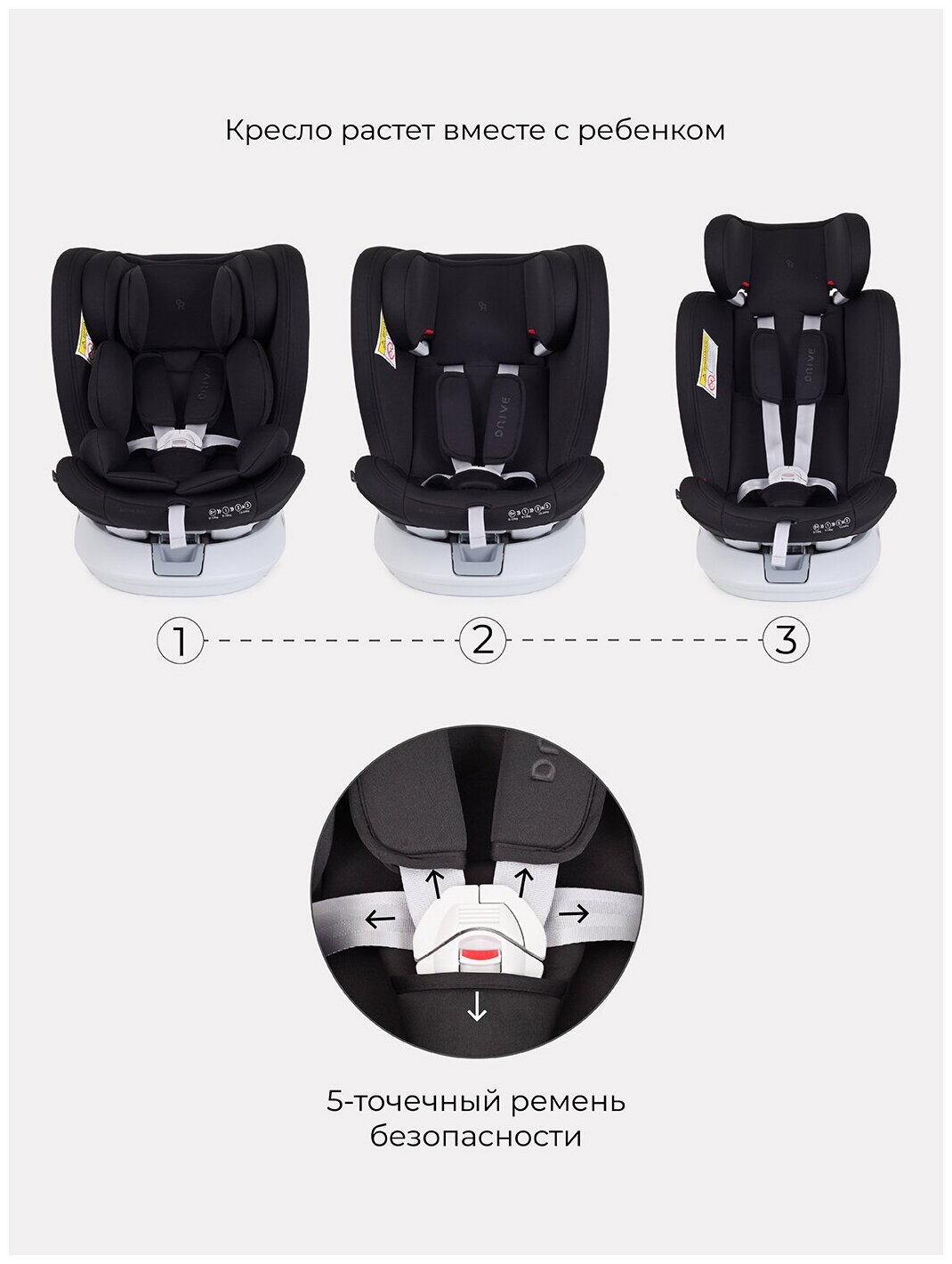 | Регулировка | наклон спинки / внутренние ремни / высота подголовника |