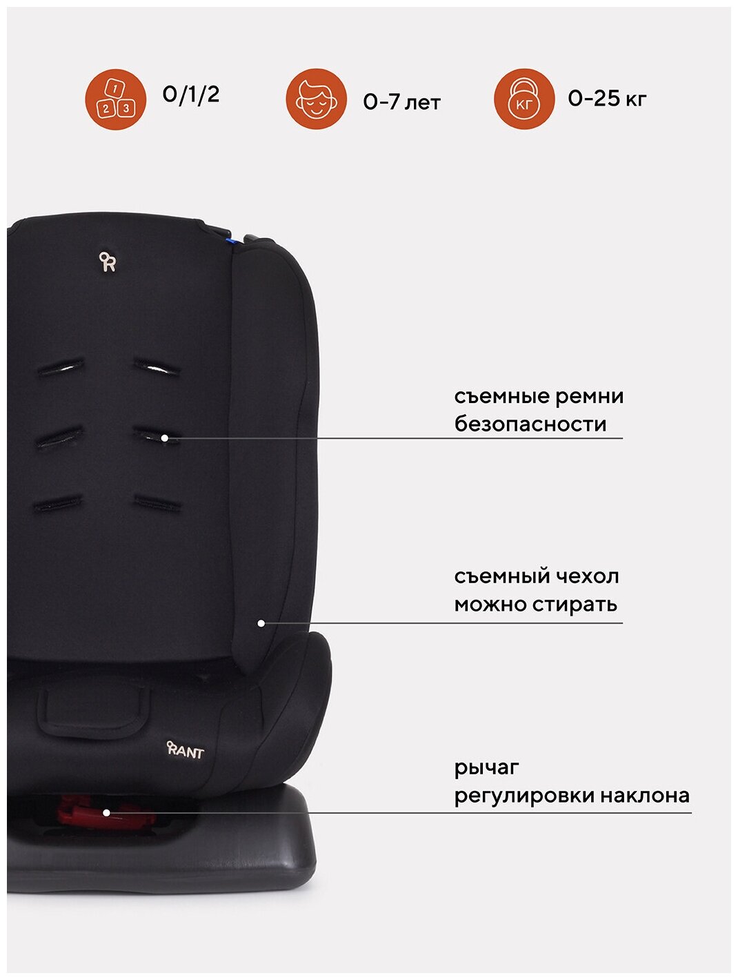 Автокресло детское Rant basic Rally арт. ZY19 группа 0+/1/2 от 0 до 7 лет вес 0-25 кг, Black