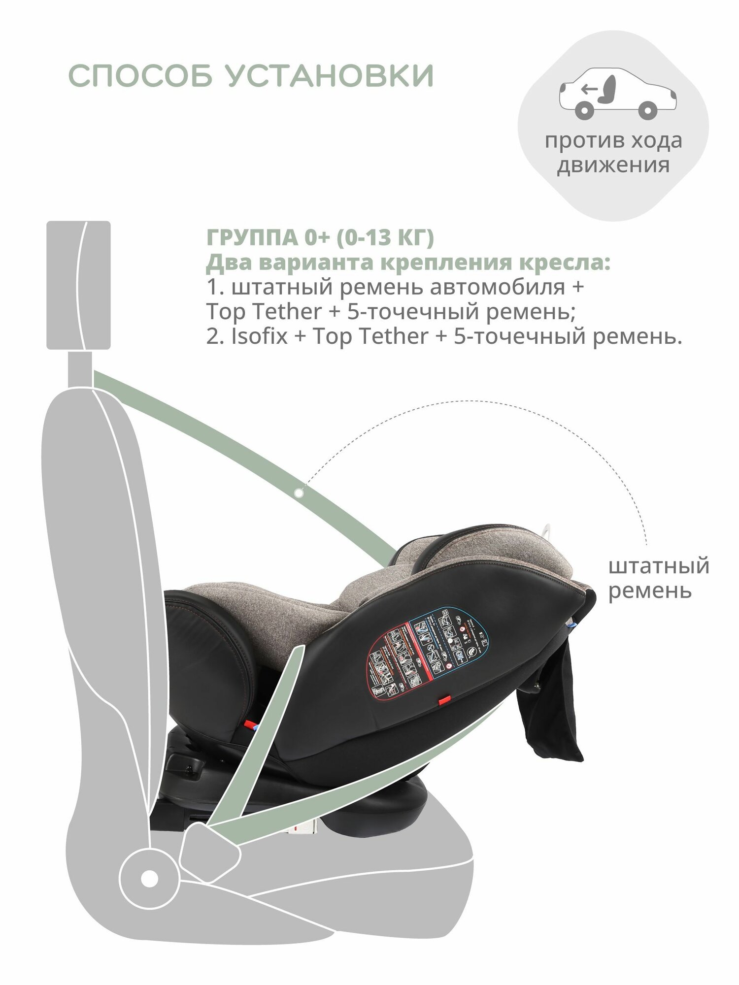 Автокресло Indigo AERO ISOFIX растущее поворотное, 0-36 кг, коричневый, бежевый
