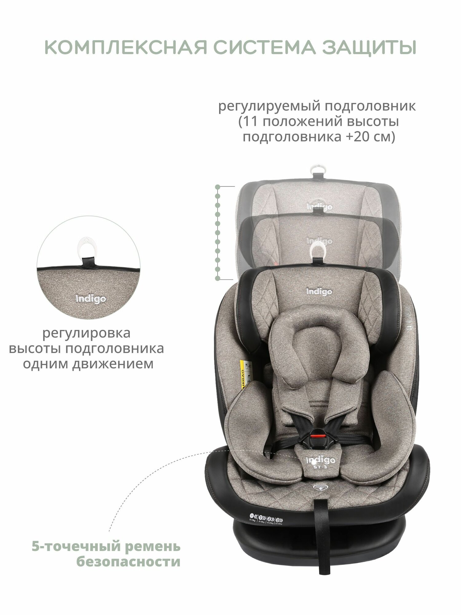 Автокресло Indigo AERO ISOFIX растущее поворотное, 0-36 кг, бежевый