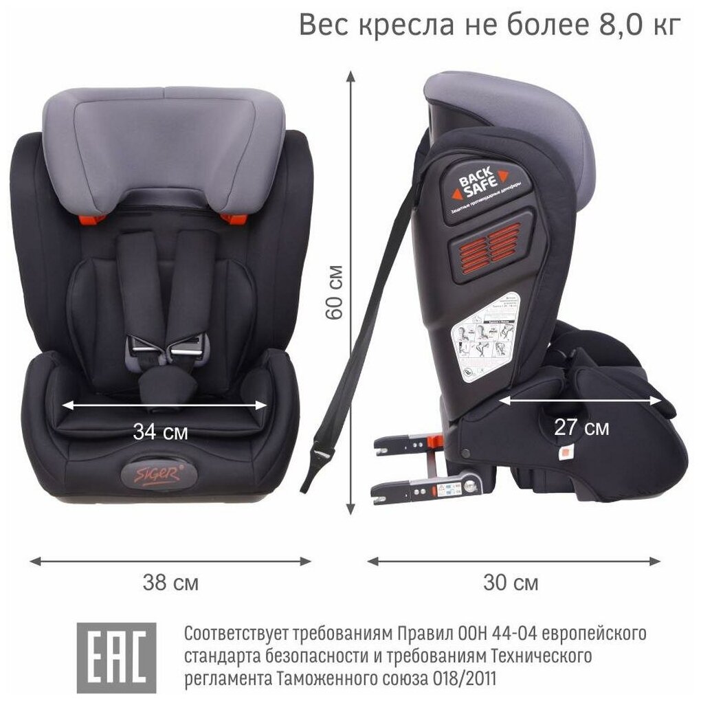 Автокресло детское Siger Гранд IsoFix от 9 до 36 кг, серое