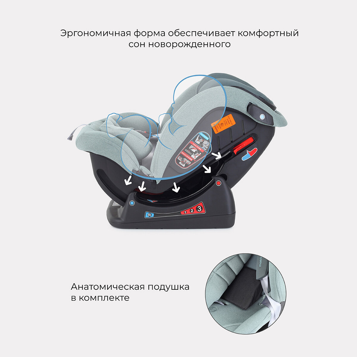 | В комплекте | анатомическая подушка, мягкие накладки на внутренние ремни, съемный чехол |