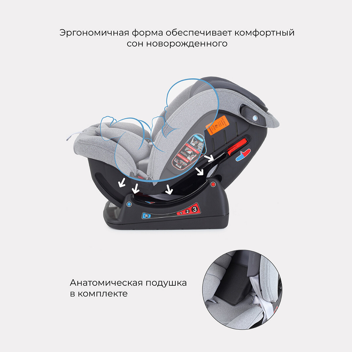 | В комплекте | анатомическая подушка, мягкие накладки на внутренние ремни, съемный чехол |