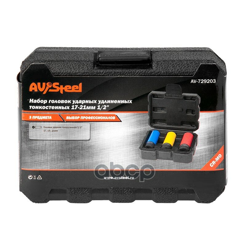 AV Steel Набор головок ударных удлиненных тонкостенных 17,19,21мм 3 предмета AV-729203 .