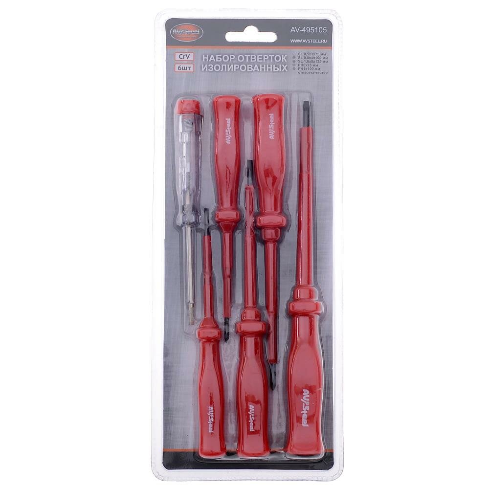 Купить Набор отверток изолированных 5 предметов с тестером "AV Steel", AV-495105