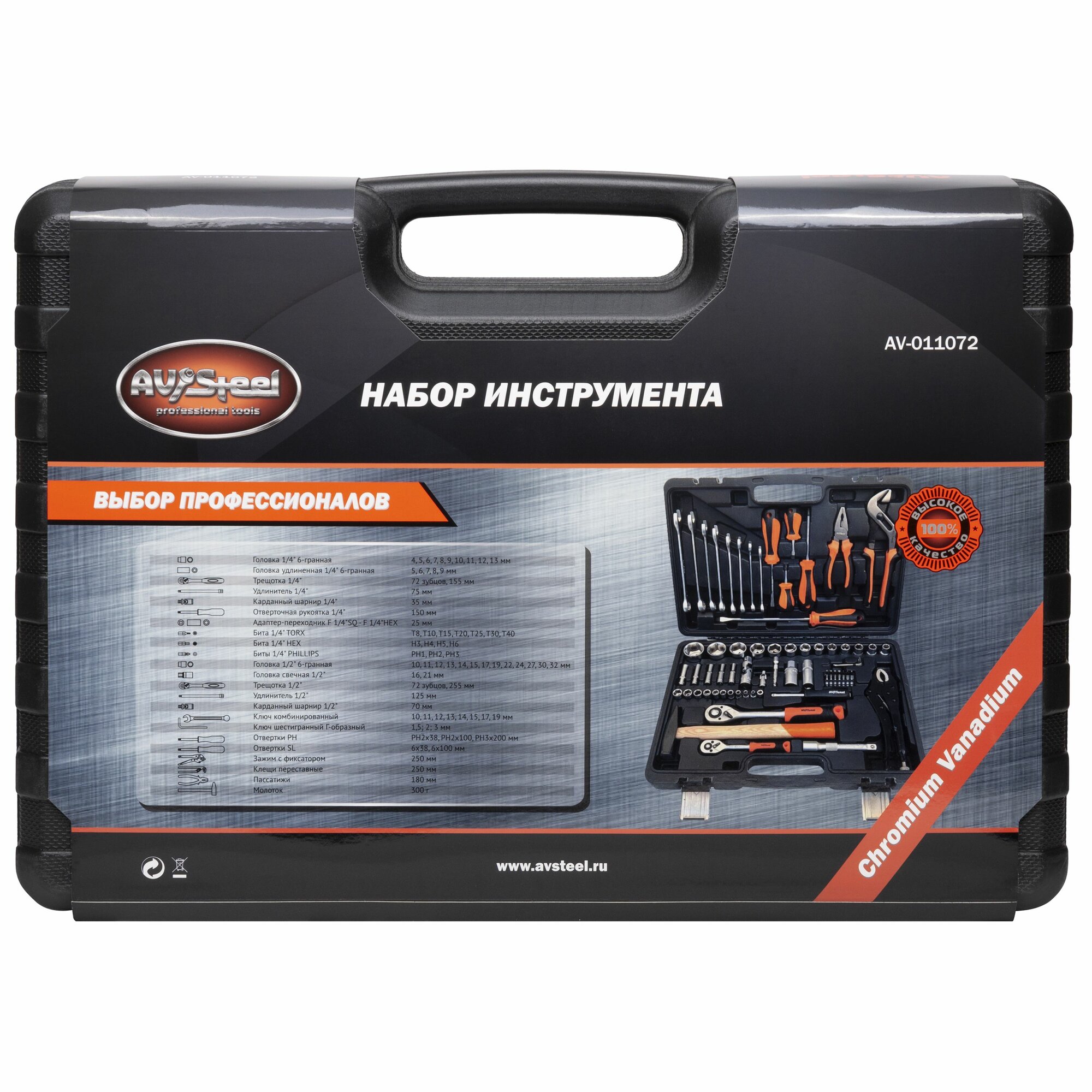 Набор Инструментов (72 Предмета) "Av Steel" 1/2,1/4 (Проф.) AV Steel арт. AV-011072