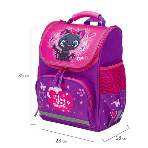 Ранец / рюкзак / портфель школьный для девочки первоклассницы Пифагор Basic, с эргономичной спинкой, Black kitten, 35х28х18 см