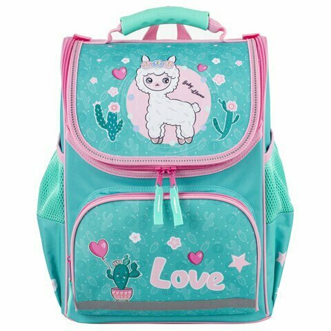 Ранец (рюкзак) школьный для девочки первоклассницы Пифагор Basic, с эргономичной спинкой, Baby lama, 35х28х18 см, 229934