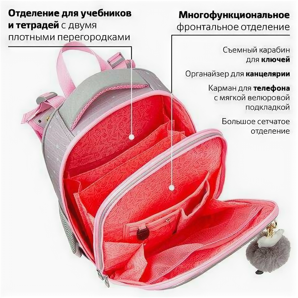 Ранец BRAUBERG Funny panda 17 л серый розовый интересное: