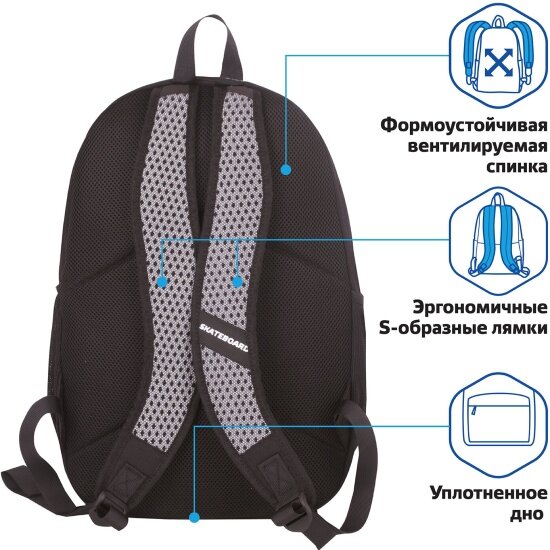 Рюкзак Brauberg Fashion City Skateboard, универсальный, черный, 46х31х15 см