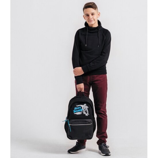 Рюкзак BRAUBERG (брауберг) FASHION CITY универсальный, Skateboard, 2 отделения, черный, 46х31х15 см, 229969