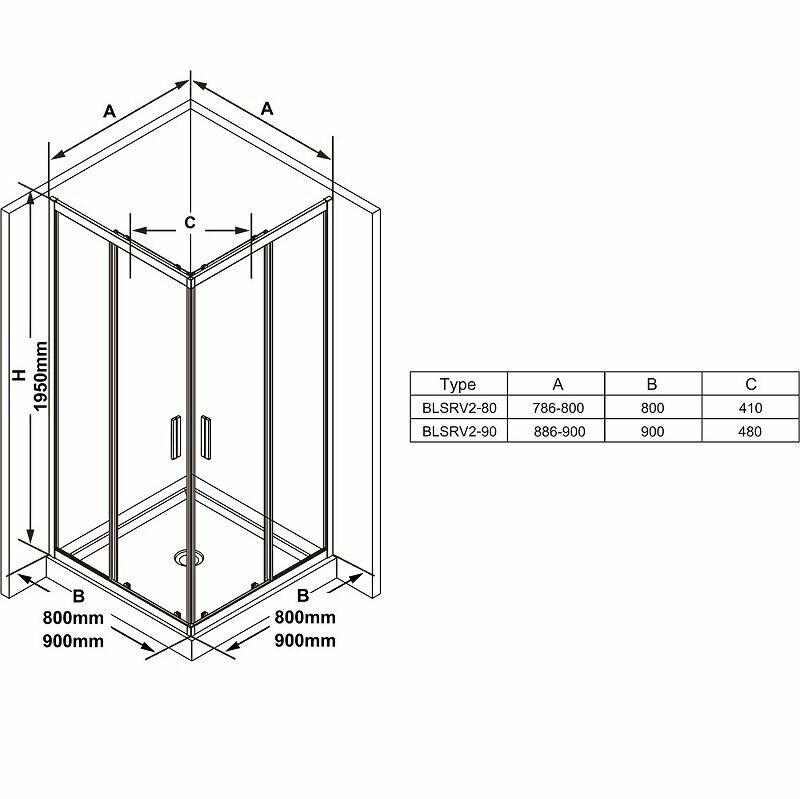 Душевой уголок Ravak Blix Slim 90x90 BLSRV2-90 профиль Хром стекло прозрачное (X1LM70C00Z1)