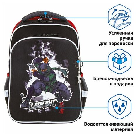 Ранец BRAUBERG QUADRO, 3 отделения, с брелком, Ninja, 37х28х18 см, 229954