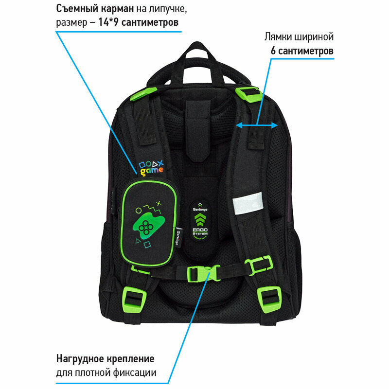 Ранец Berlingo RU07156 Expert Max Gaming Zone 2 отделения с дождевиком 37х28х16см