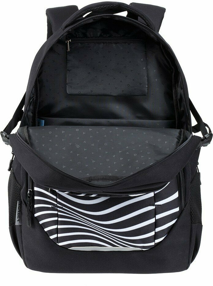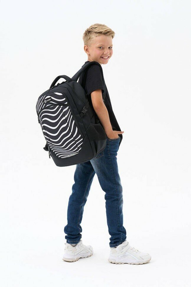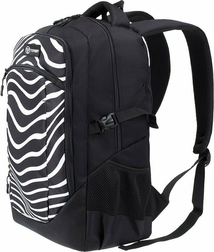 Рюкзак TORBER CLASS X, черный с принтом "Зебра", 46 x 32 x 18 см+ Мешок для сменной обуви в подарок!