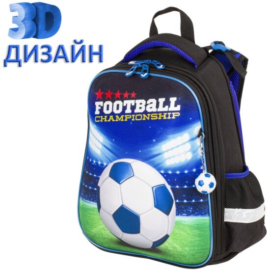 Купить Ранец BRAUBERG PREMIUM, 2 отделения, с брелком, "Football champion", 3D панель, 38х29х16 см, 229911