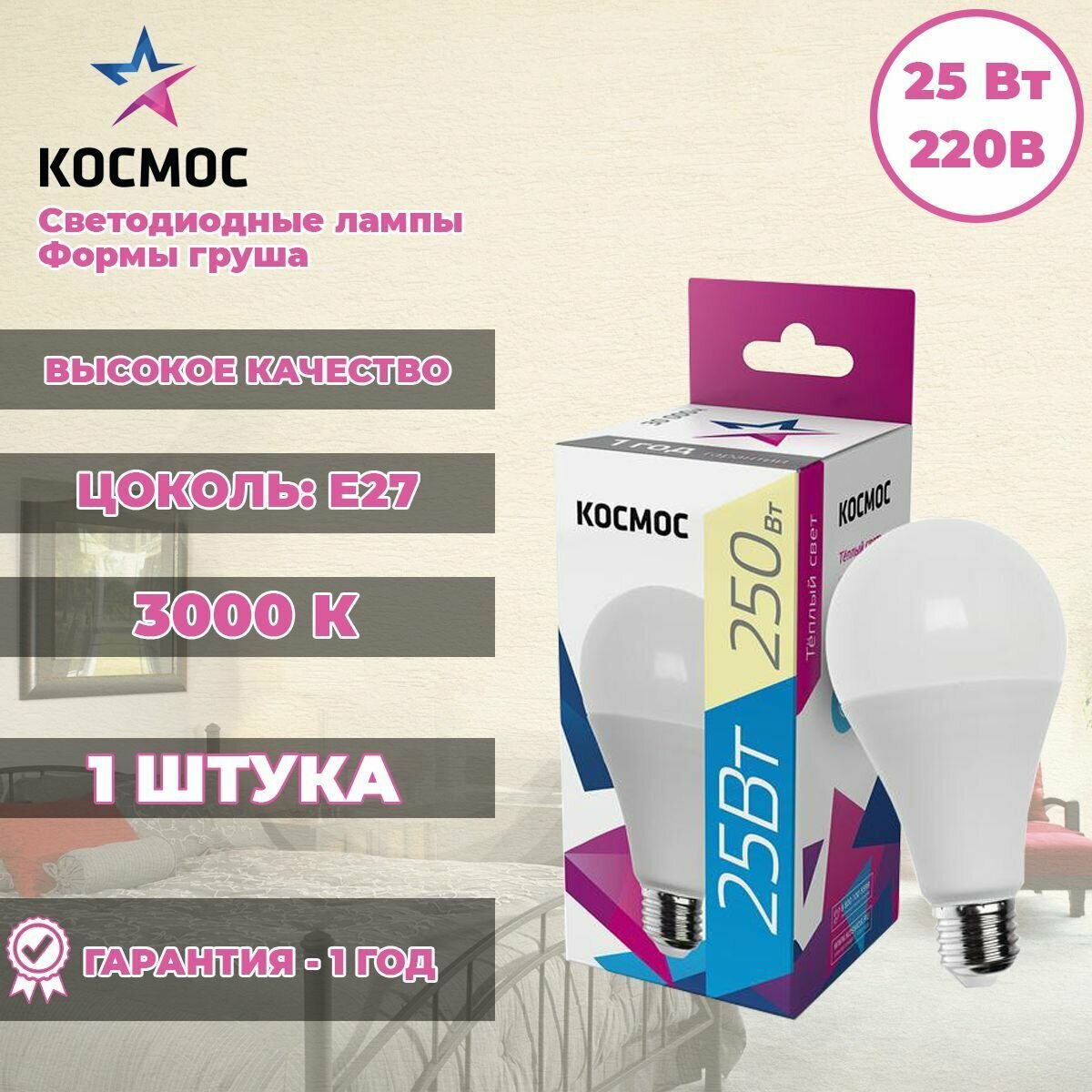 Светодиодная лампа Космос LED25wА65Е2730 Е27 3000К теплый белый свет 25Вт