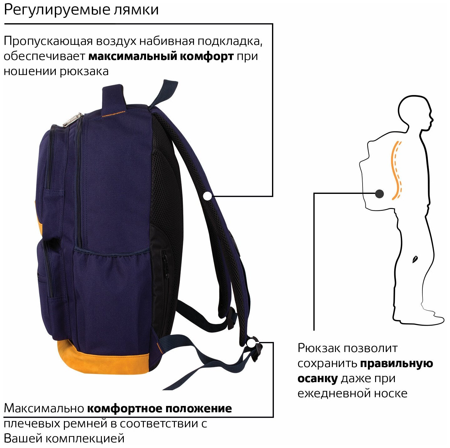 | Особенности | ручка для переноски / вентилируемые лямки / вентилируемая спинка / без наполнения / регулируемые лямки |