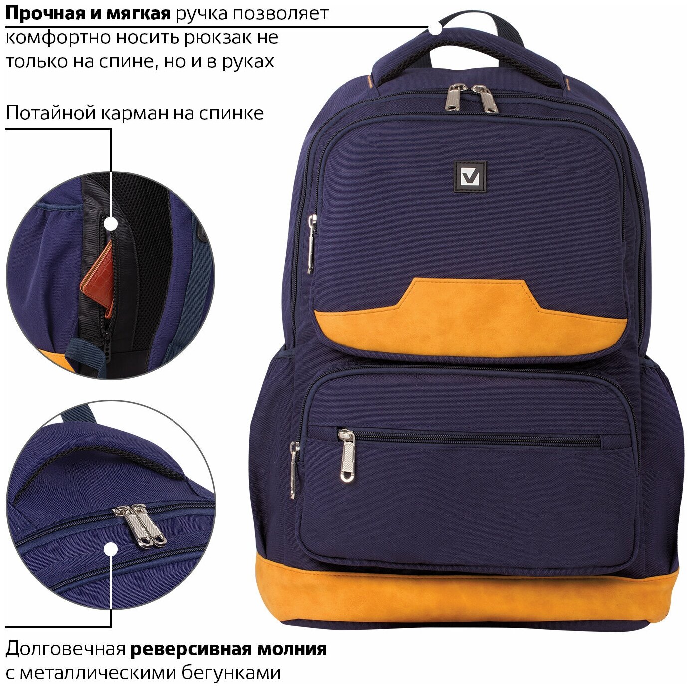 Рюкзак BRAUBERG STATES универсальный, карман-антивор, "Bronx", темно-синий, 46х31х14 см, 226349