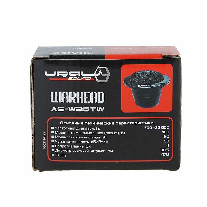 Колонки автомобильные Ural AS-W30TW (без решетки) 160Вт 93дБ 4Ом 8cм (3.15дюйм) (ком.:1кол.) высокочастотные однополосные
