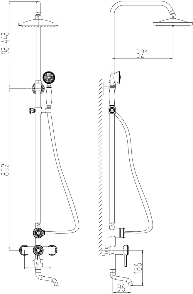 | Материал душевой стойки | латунь |