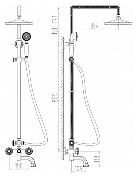 Душевая стойка MILACIO Baroque, серебро (MC.100.1SL)