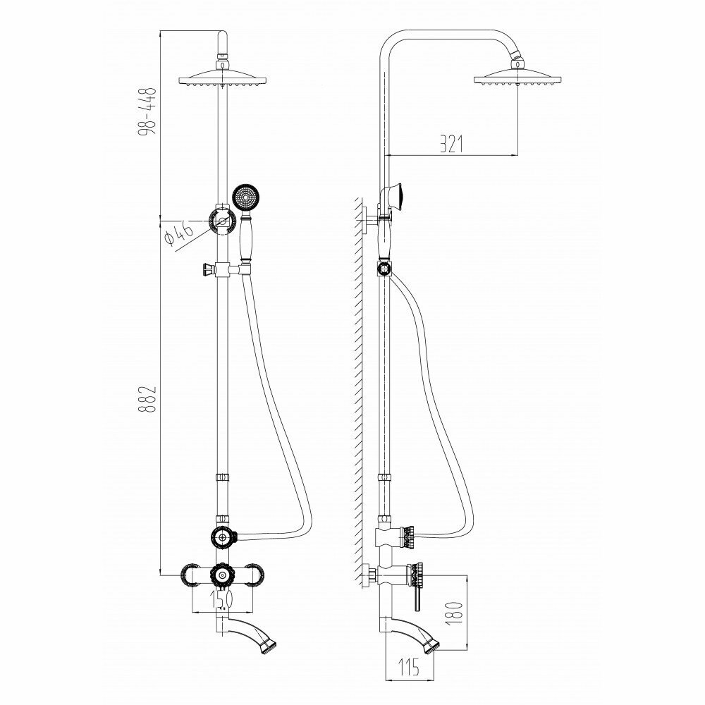 | Материал душевой стойки | латунь |
