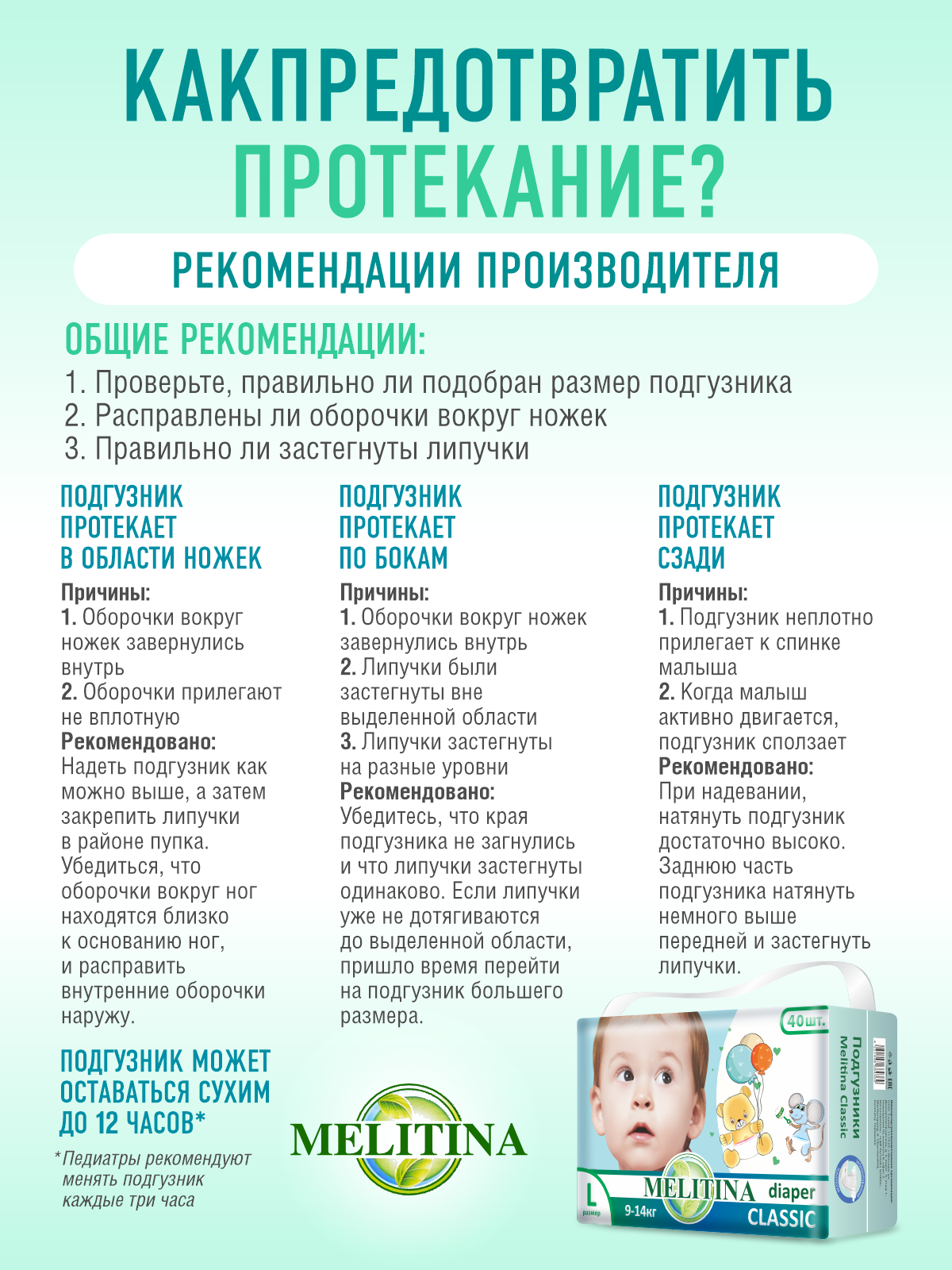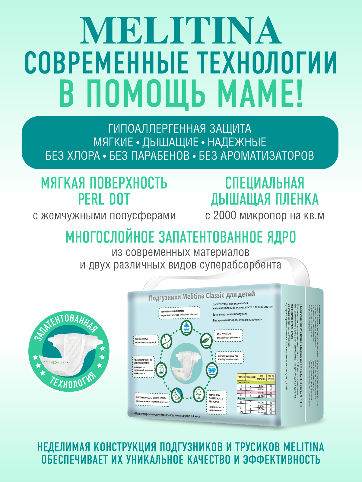 Подгузники для детей Melitina Classic Памперсы детские для малышей размер L, 4, 9-14 кг, 40 штук интересное: