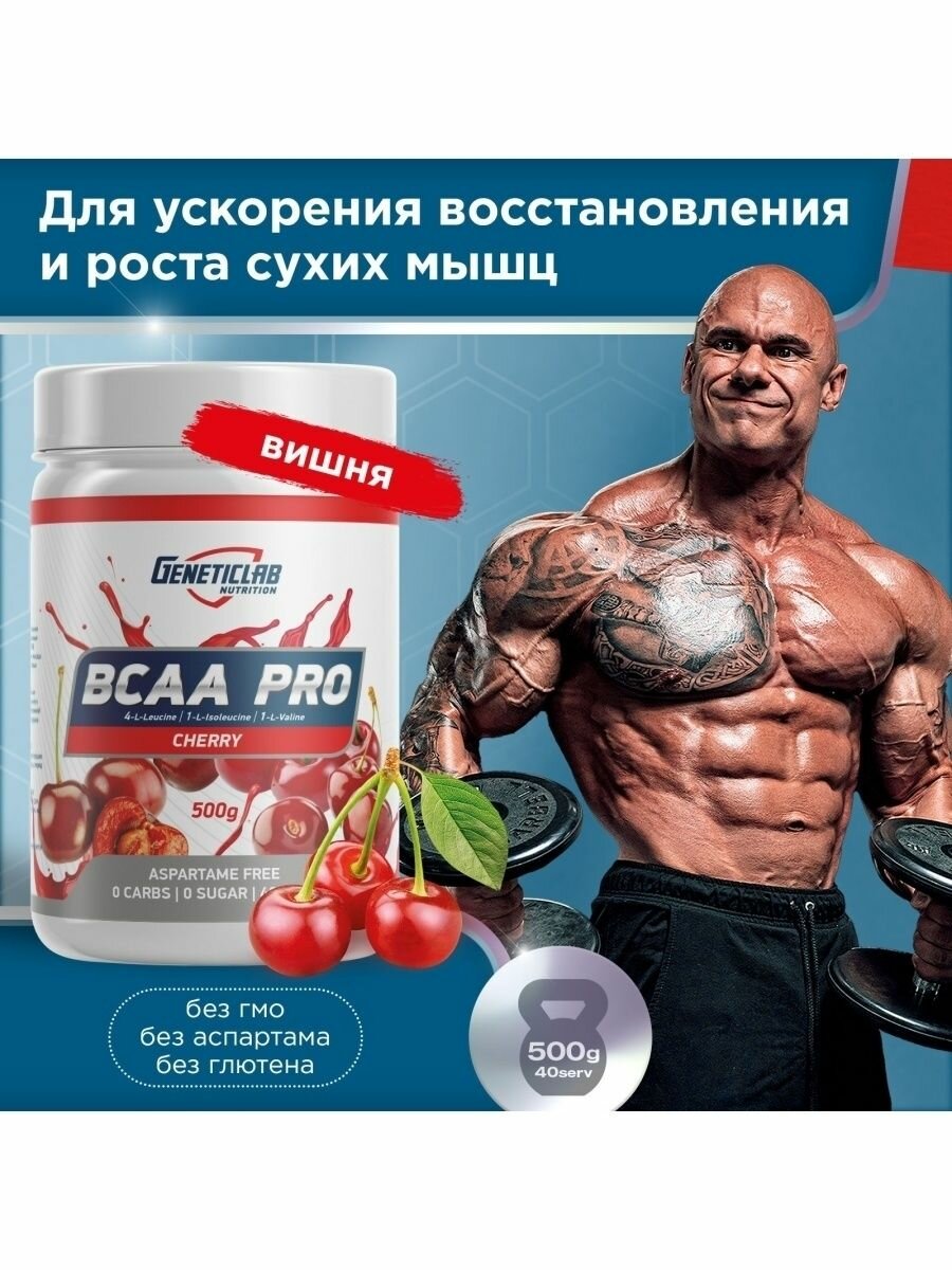 Аминокислоты BCAA (БЦАА), Geneticlab Nutrition, BCAA Pro, 500 г, Вишня