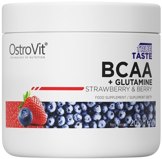 Купить Аминокислоты BCAA (БЦАА) OstroVit BCAA + Glutamine (200 г) Клубника-Черника