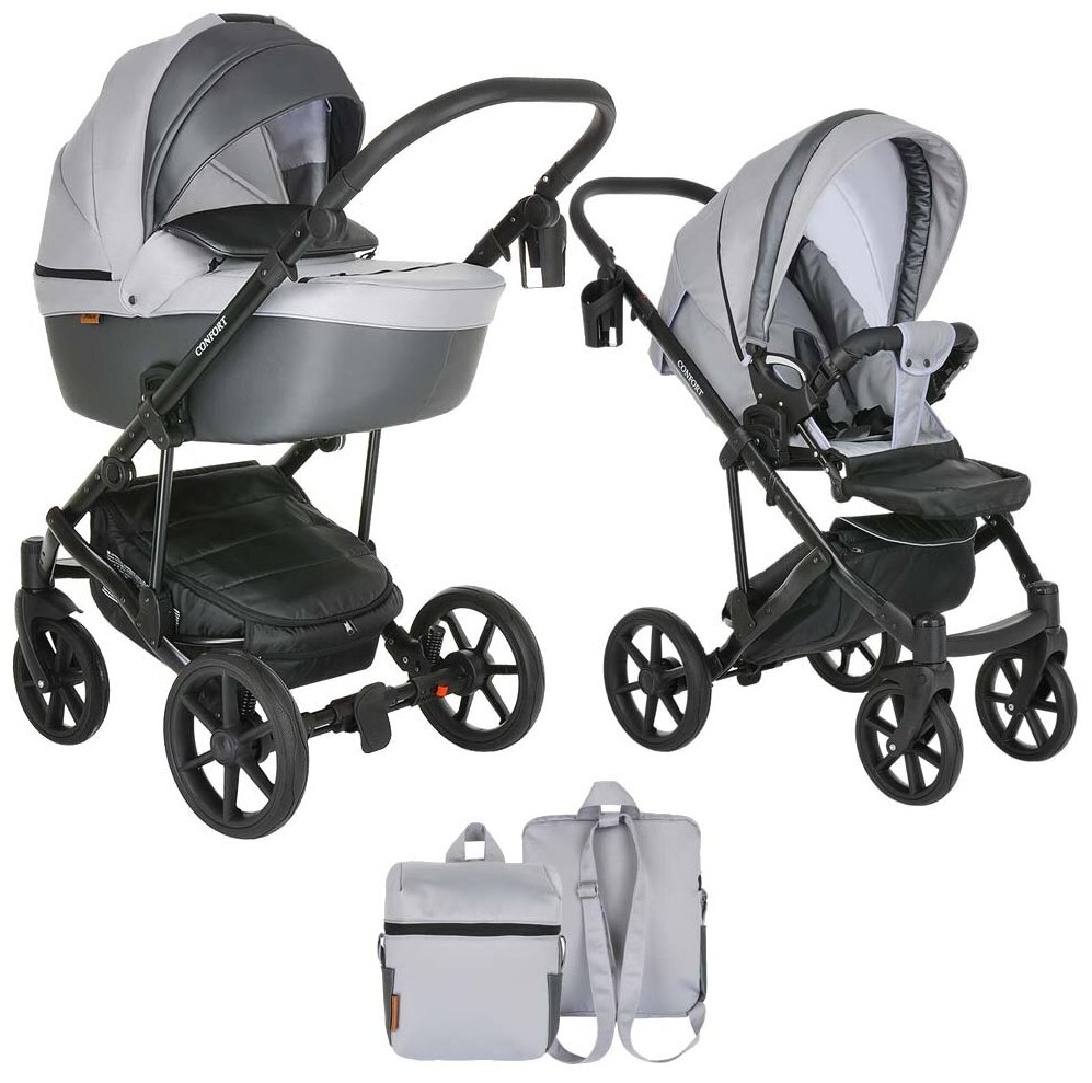 Купить Коляска 2 в 1 Pituso Confort 2020 гелевые колеса плюс Серый+Кожа Тем.Серый/Рама Черная/Гель.колеса плюс