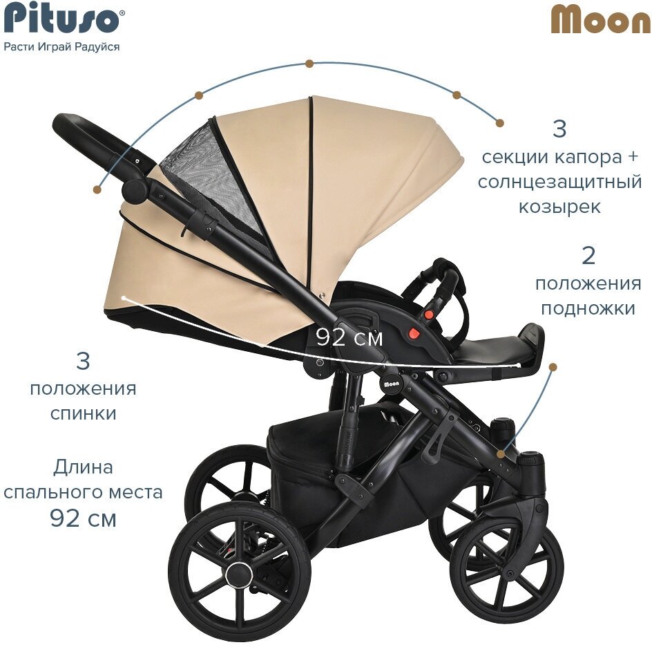 Коляска 2 в 1 Pituso Moon Кожа Vanilla интересное: