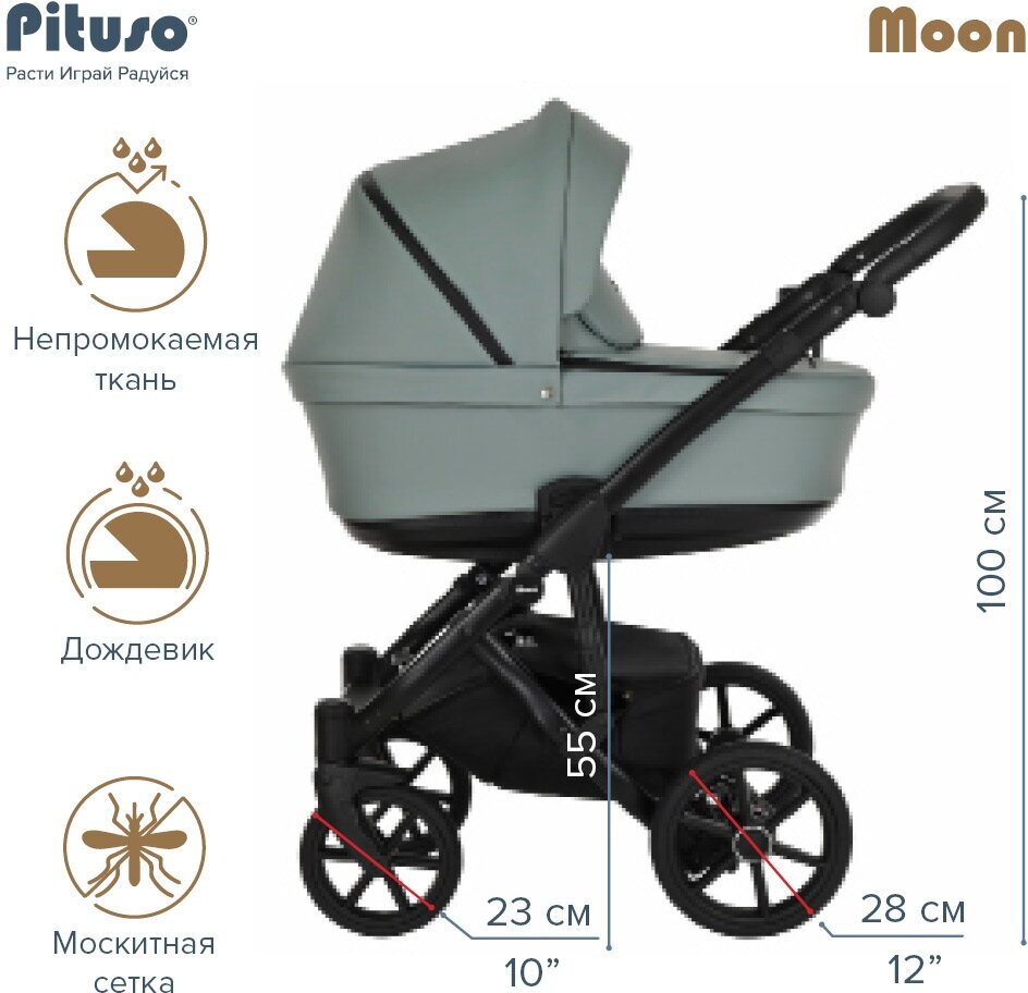 Коляска 2 в 1 Pituso Moon Кожа Turquoise интересное: