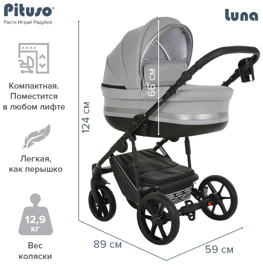 PITUSO коляска детская 2 в 1 Luna grey кожа,