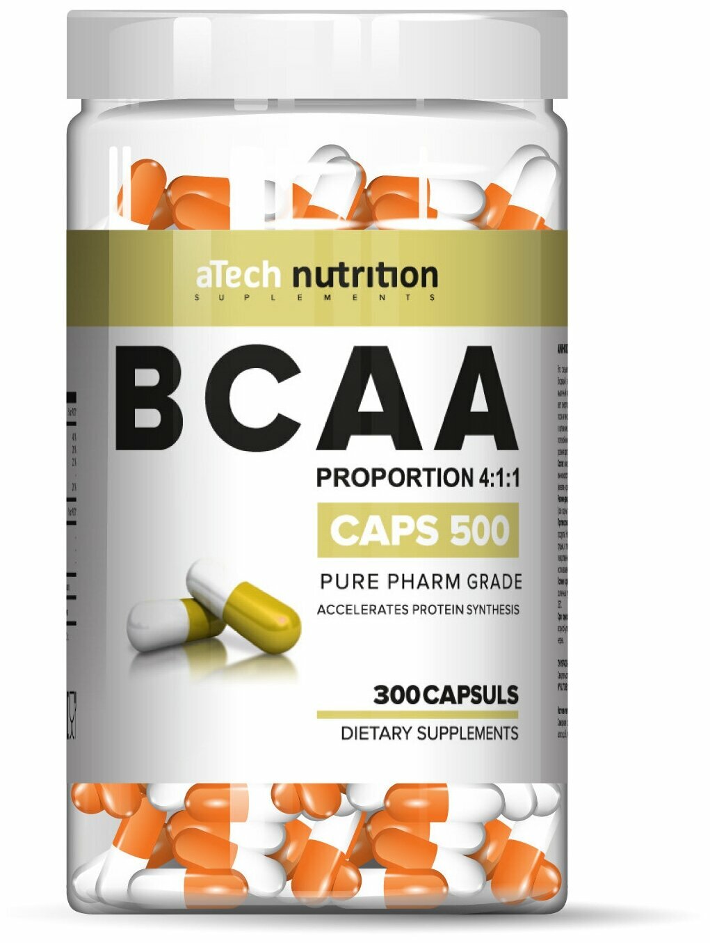 Аминокислотный комплекс aTech Nutrition BCAA/ВСАА 4:1:1, для спортсменов, 300 капсул