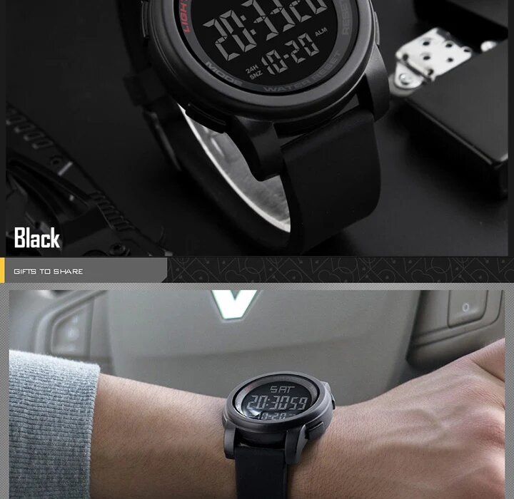 Часы наручные SKMEI 1257, водонепроницаемые, мужские, противоударные Черные