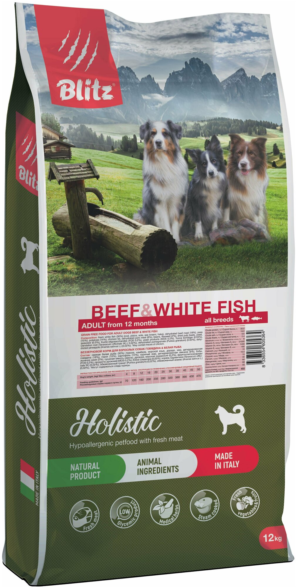 Купить Сухой корм BLITZ HOLISTIC GRAIN FREE ADULT BEEF & WHITE FISH беззерновой для взрослых собак всех пород с говядиной и белой рыбой (12 кг)