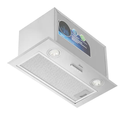 Вытяжка встраиваемая в подвесной шкаф Мидеа MH60I370X нержавеющая сталь металл 3 скорости, светодиодное освещение, мощность 210Вт уровень шума 55дБ /