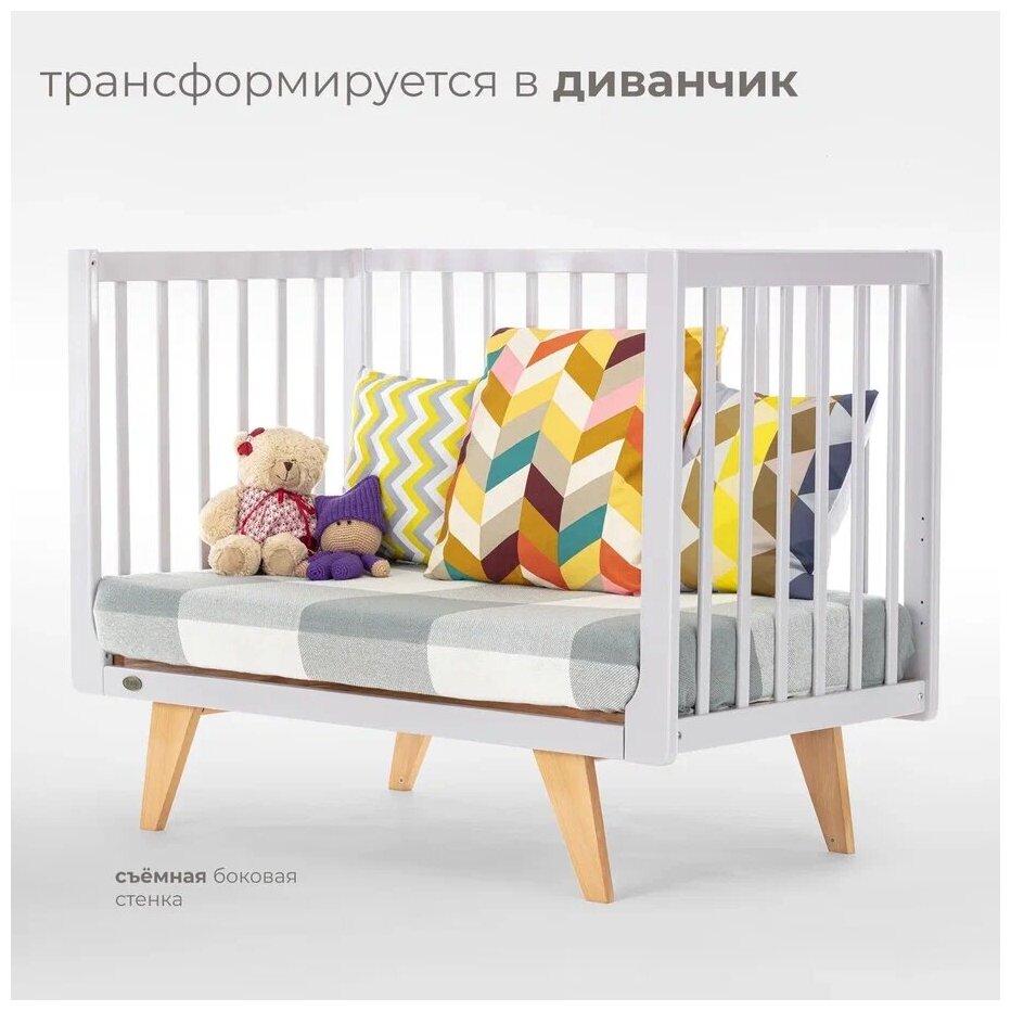ВДК Детская кровать-трансформер «Слоник» с поперечным маятником, цвет белый