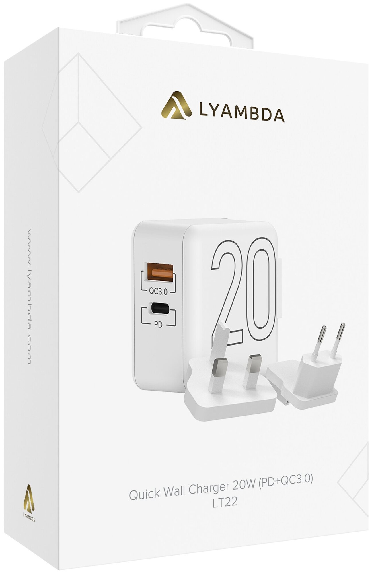 Сетевое зарядное устройство Lyambda LT22 20Вт USB Type-C(PD) + QC3.0 белый