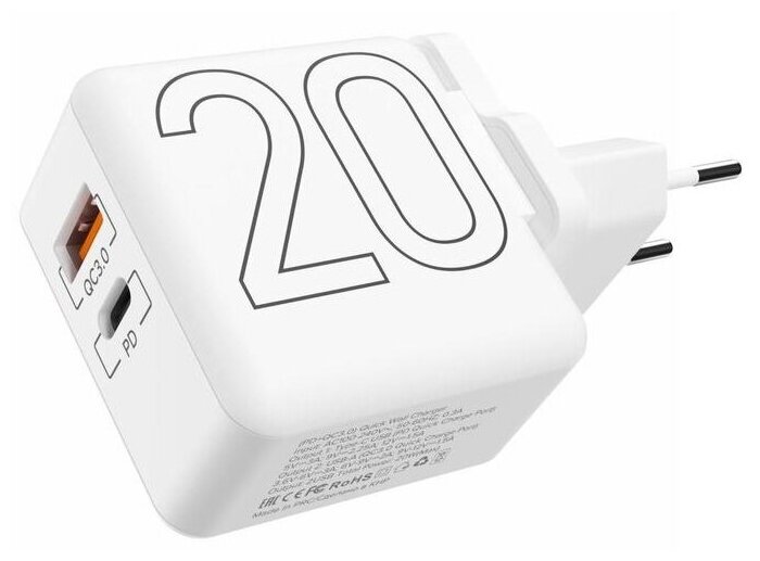 Сетевое зарядное устройство LYAMBDA 20 W с 2-мя выходами (PD+QC3.0) Цвет Белый TFN LT22