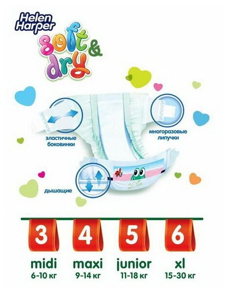 СохранитьПодгузники Helen Harper Soft & Dry Maxi ➃ 7-18 кг 12 шт интересное: