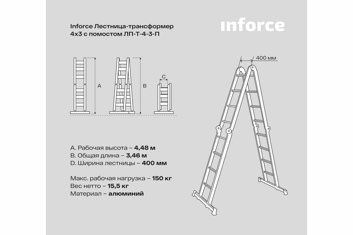 Купить Лестница-трансформер с помостом Inforce 4x3 ЛП-Т-4-3-П
