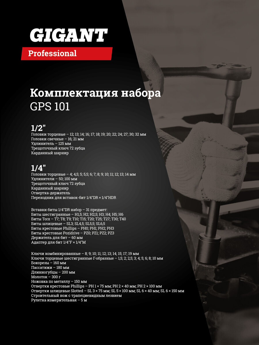Набор инструментов Gigant Professional 1/2" и 1/4" 101 предмет GPS 101