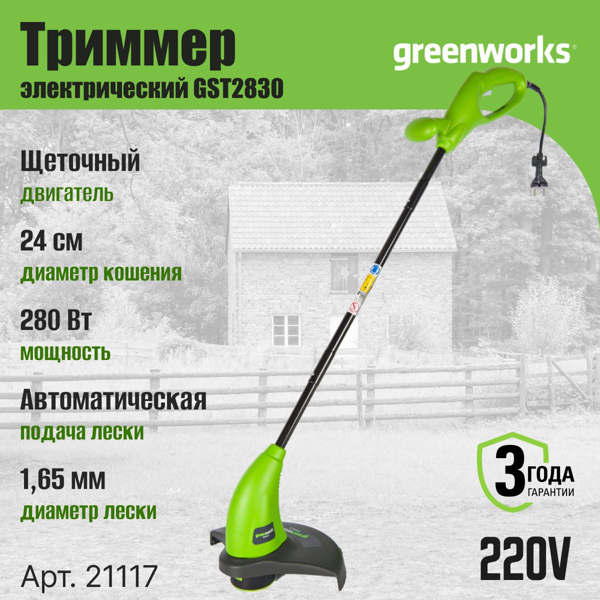 Триммер электрический greenworks GST2830 21117 280W, 280 Вт, 21 см